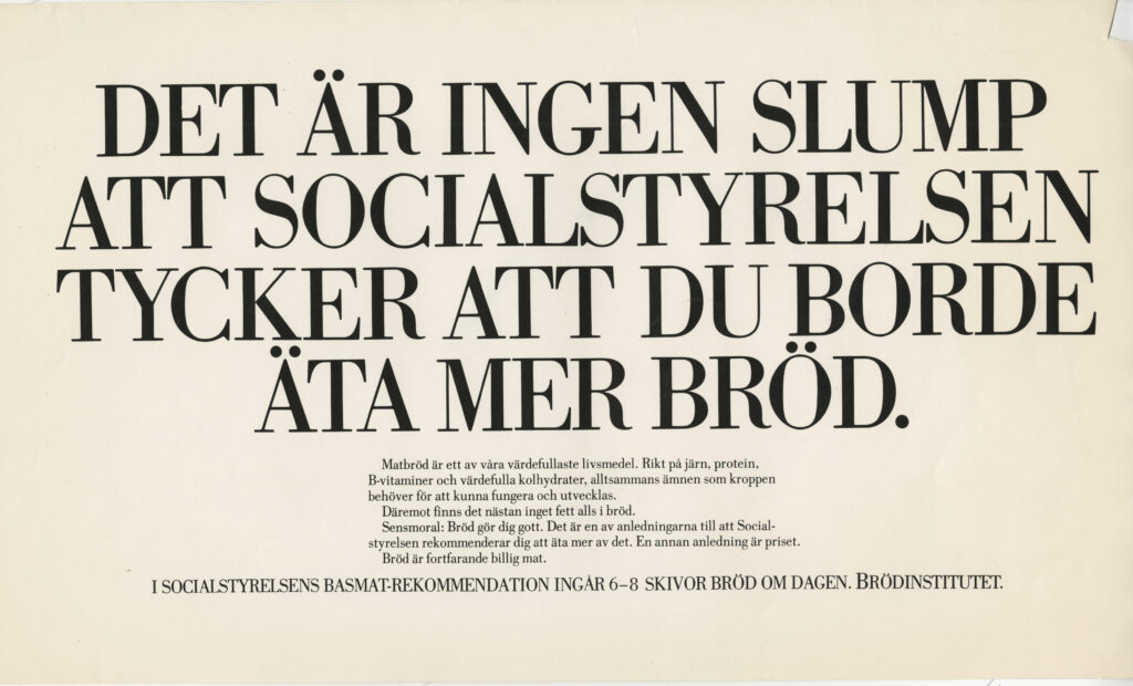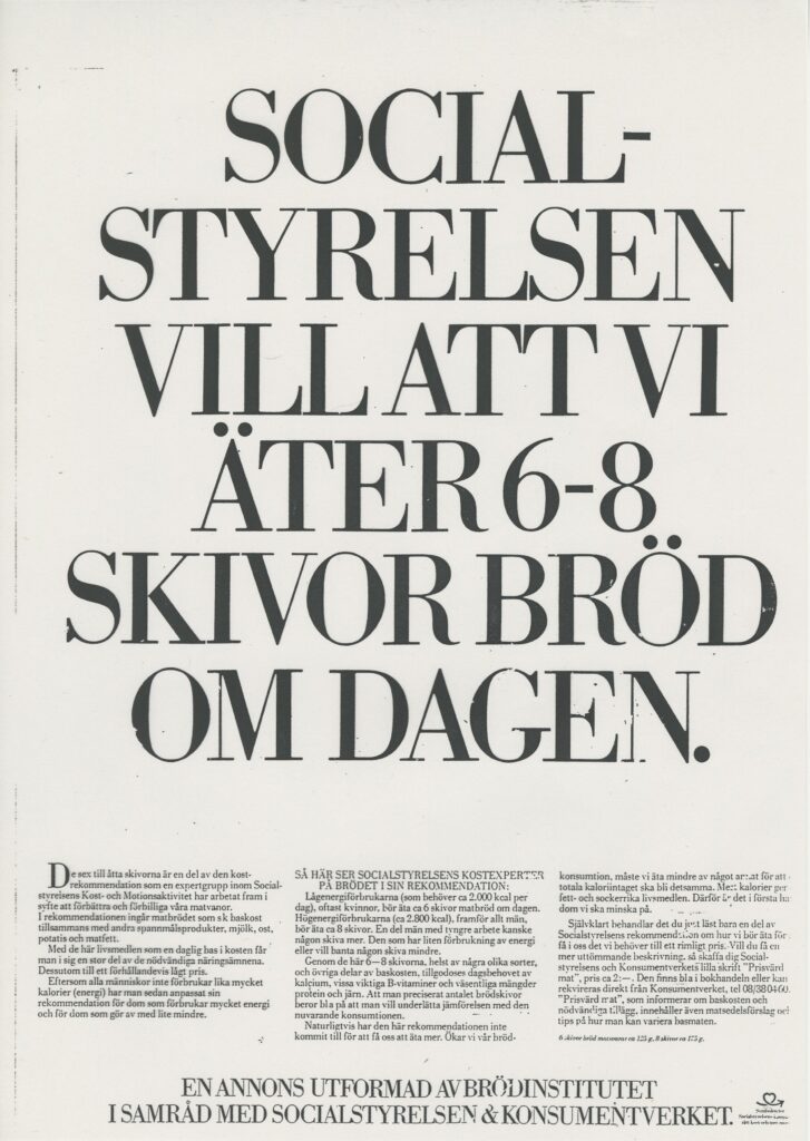 Den 23 februari 1976 publicerade Brödinstitutet den första annonsen med budskapet ”Socialstyrelsen vill att du äter 6–8 skivor bröd om dagen”. Kampanjen skulle komma att bli en av de mest uppmärksammade i modern svensk livsmedelshistoria.